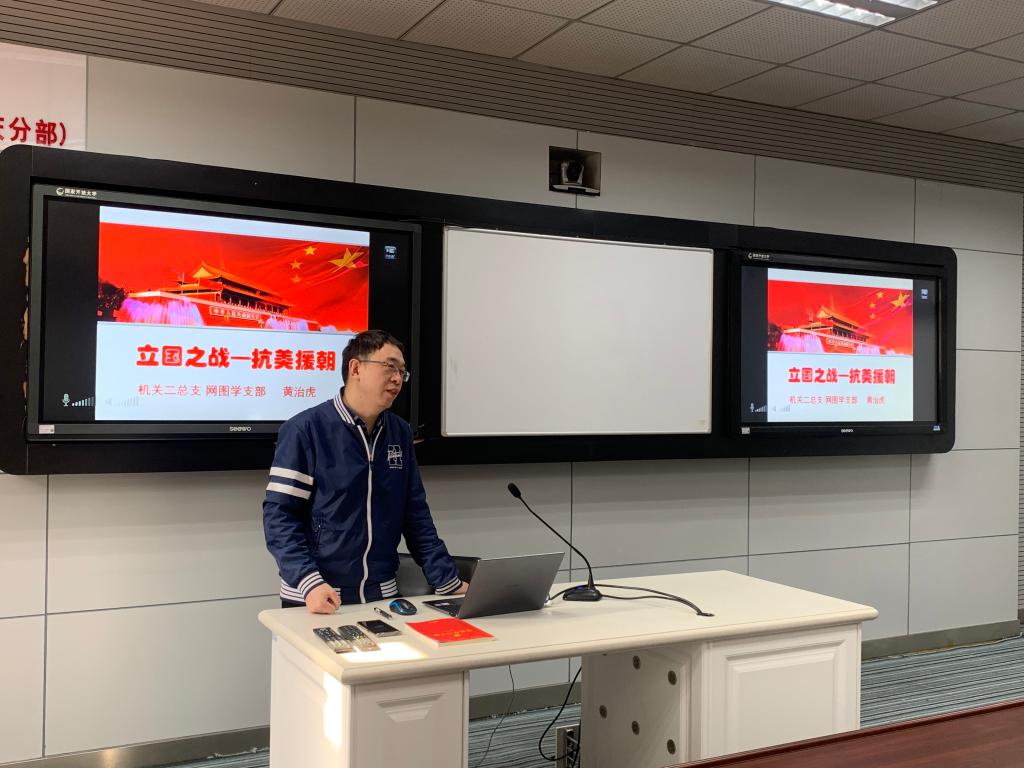 之后,黄治虎书记做了题为《立国之战——抗美援朝》的党课,从新中国成立之初,为什么坚持抗美援朝战役?为什么说抗美援朝是立国之战?等方面详细讲述了中国共产党带领全国人民逐步从“站起来”到“强起来”的历史过程。党员们表示,站在“两个一百年”历史交汇点,广大党员尤其需要用马克思主义基本原理分析把握历史大势,用党的奋斗历程和伟大成就鼓舞斗志、明确方向,用党的光荣传统和优良作风坚定信念、凝聚力量,用党的实践创造和历史经验启迪智慧、砥砺品格。