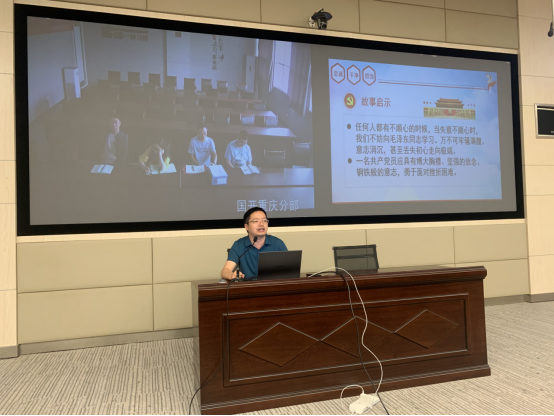 会议第一阶段,开展专题党史学习教育活动。机关二总支副书记曾靓以《红岩精神 永放光芒》为题,详细讲述了红岩精神的内涵、红岩精神的实践来源、红岩精神的产生,以《挺进报》事件的全过程,11.27大屠杀事件,诠释了在风雨如磐的革命斗争岁月中,以周恩来为代表的南方局老一辈无产阶级革命家和革命先烈锤炼形成了红岩精神。全体党员同志深受鼓舞,对抗战时期和解放战争初期,中央南方局始终处在极其险恶的政治环境中,善处逆境,勇于牺牲,在艰难的局面中开拓所展示的中国共产党人的风采由衷敬佩。
