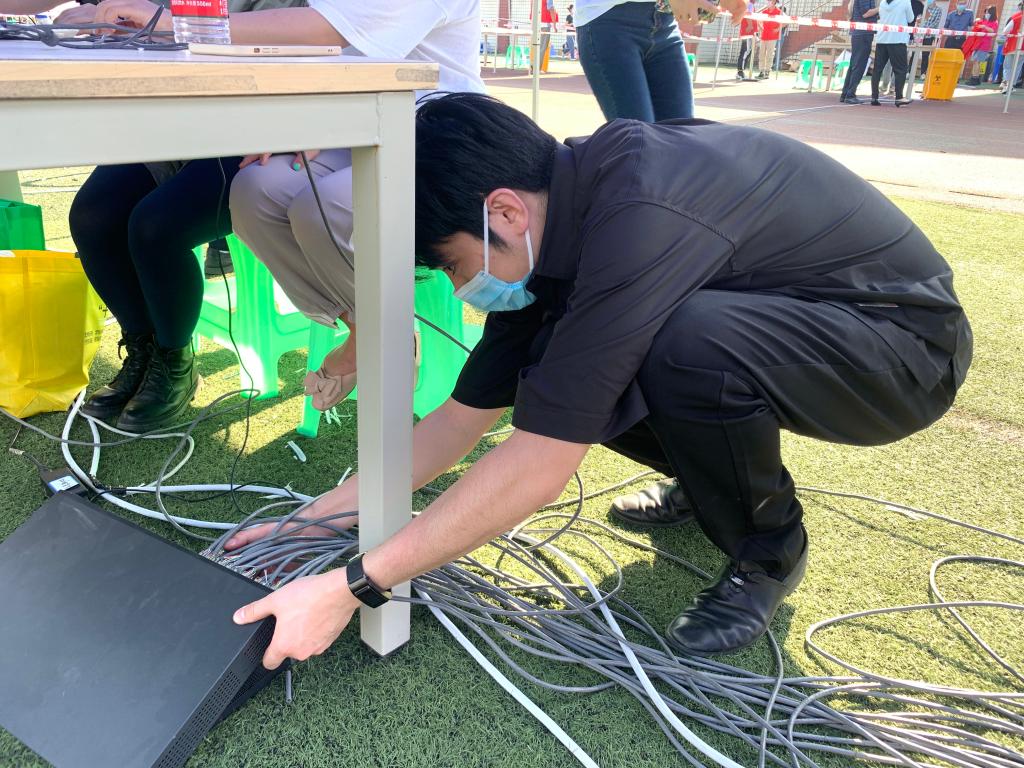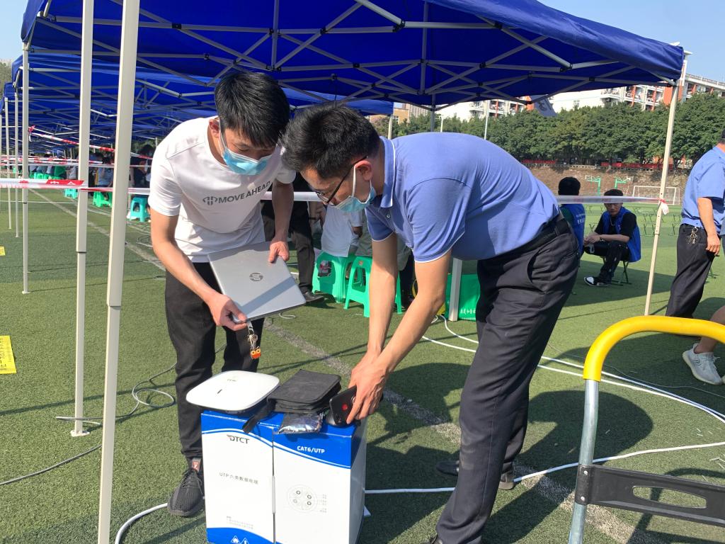 网信处作为校园网络的保障者,第一时间启动应急保障方案,调动部门力量,组织党员突击队赶赴现场,在医护人员入校进行核酸检测前,优化人员配置,按照现场实际情况重新划分在岗人员,成功架设检测现场网络,累计完成两校区30余个核酸采集点的网络铺设和调试,全程保障网络通畅,为校园内核酸检测工作的顺利开展奠定坚实基础。部门党员志愿者在检测点现场协助医务人员开展核酸检测,维护现场秩序,耐心解答师生问题。