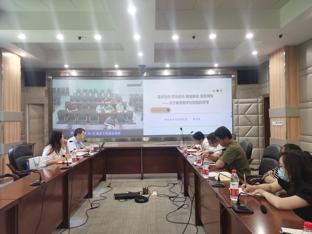 会议第三项,支部书记黄治虎讲党课,党课题目为《关于教育数字化转型的思考》。黄治虎从转型理念、转型目标、转型任务、转型方法和组织保障5个方面进行讲解。提升学校全员数字素养,构建与数字时代相适应的教育治理和人才培养体系,打造“互联网+”特色项目的高等学校。